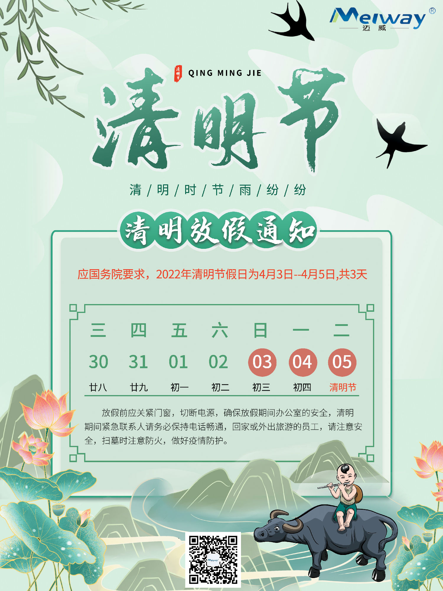 2022年清明節(jié)將至,根據(jù)國家法定假期規(guī)定,并結(jié)合公司實際情況,現(xiàn)公司對清明節(jié)放假做出以下安排,請各位員工參照執(zhí)行,具體如下:
